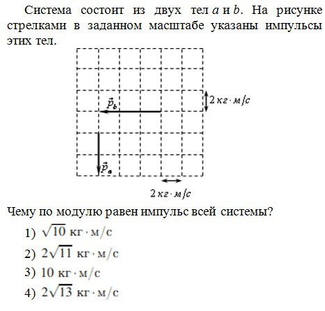 3.Перед столкновением два мяча движутся взаимно перпендикулярно, первый – с импульсом р 1= 3 кгм/с, а второй – с импульсом р2 = 4 кгм/с. Чему равен модуль импульса системы мячей сразу после столкновения? Время столкновения считать малым, а столкновение – абсолютно упругим.