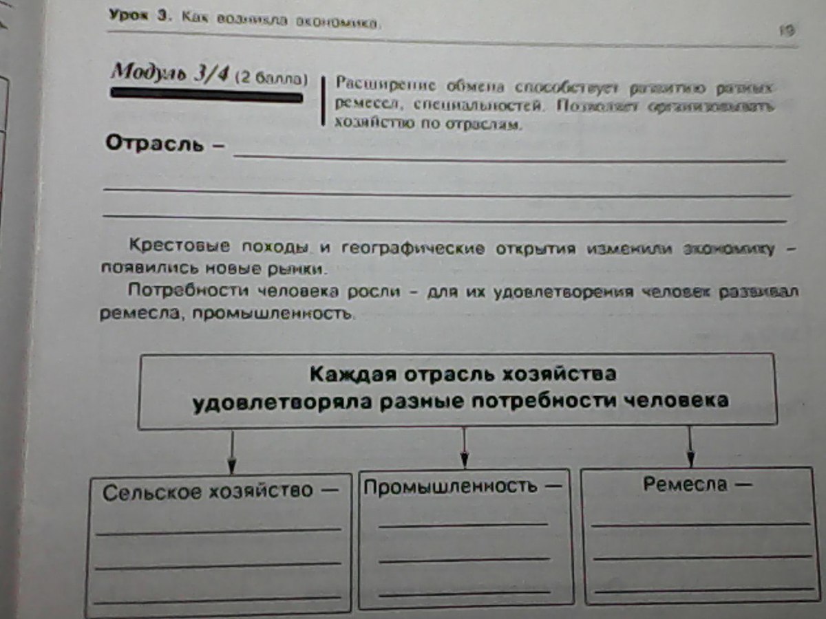 Каждая отрасль хоз-ва удовлетворяла разные потребности человека: