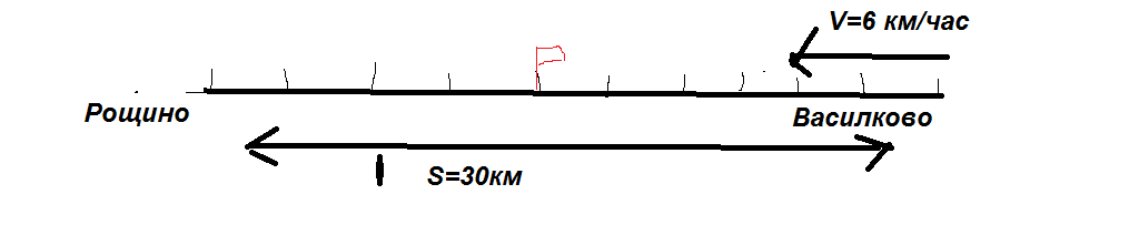 Расстояние между Рощино и Васильково 30 км.Построй шкалу с ценой деления 3км.Покажи на ней движение пешехода из Васильково в Рощино со скоростью 6км/час.Через какое время после выхода он находился на расстояние 18 км от Рощино?(Если можно сделайте задачу во вложение,ладно?:))