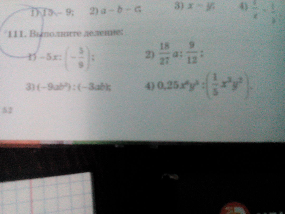 г) 0,25x^6y^3÷(1/5x^3y^2)=25/10x^6y^3×1/1/5x^3y^2=25/2x^3y=12,5x^3y