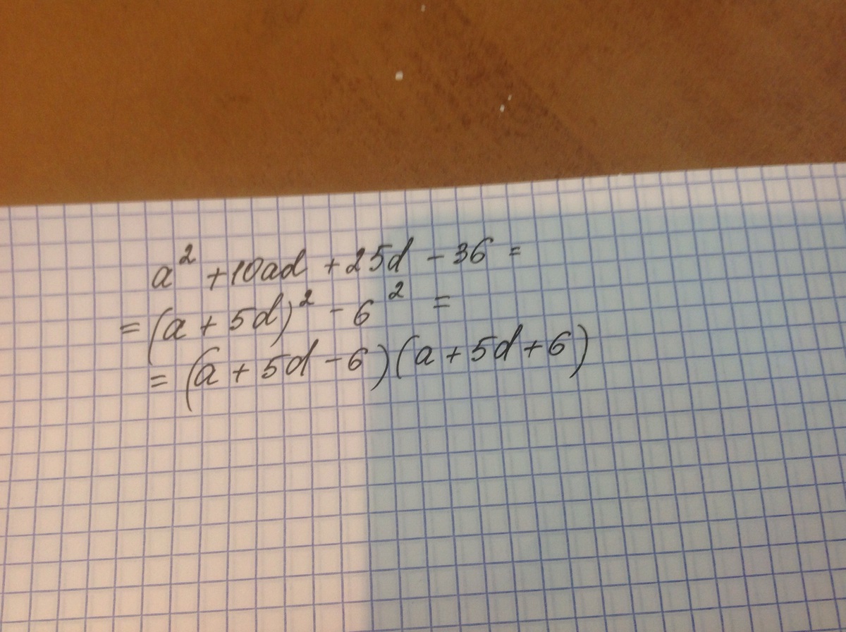 *----це означає у другому степень((((((розкладіть на множники а*+10аd+25b*-36 поможіть будьласка