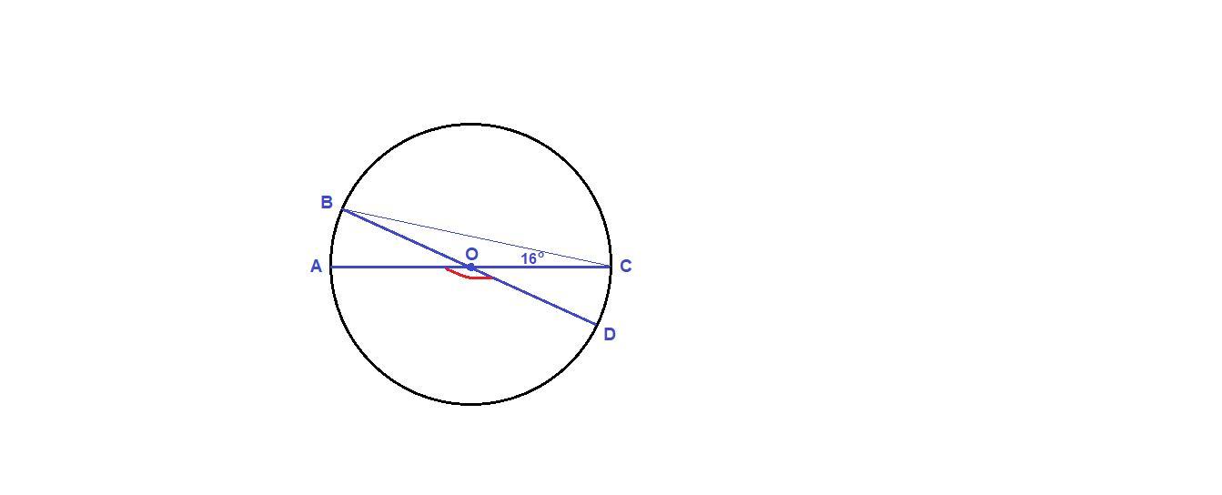 отрезки АС и BD-диаметры окружности с центром О.Угол АСВ равен 16°.Найдите угол АОD.Ответ дайте в градусах