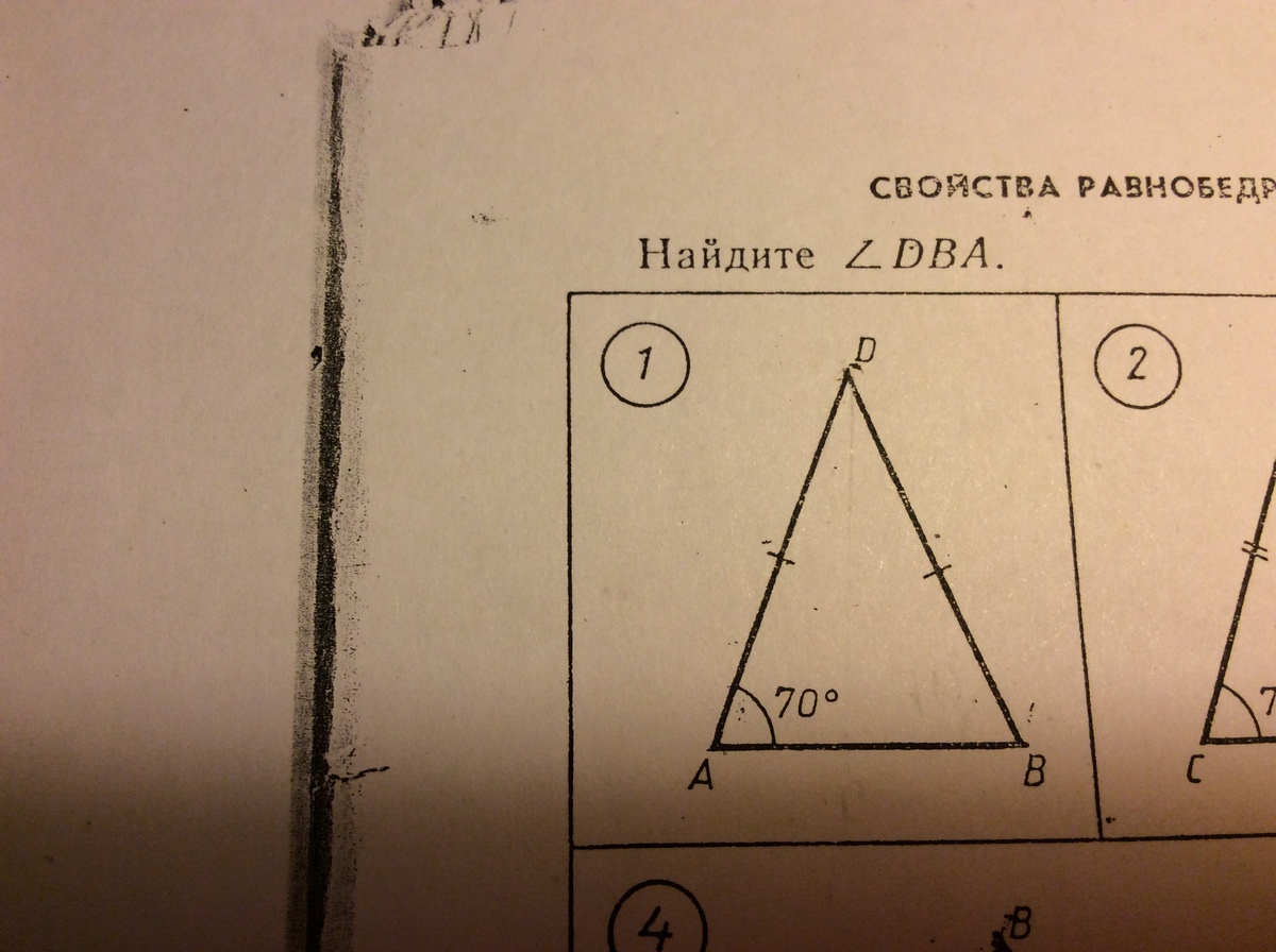 Так как треугольник равнобедренный то, по свойству равнобедренного треугольника "углы при основании равны. От сюда следует что угол ДБА равен углу БАД , то есть 70 градусов.