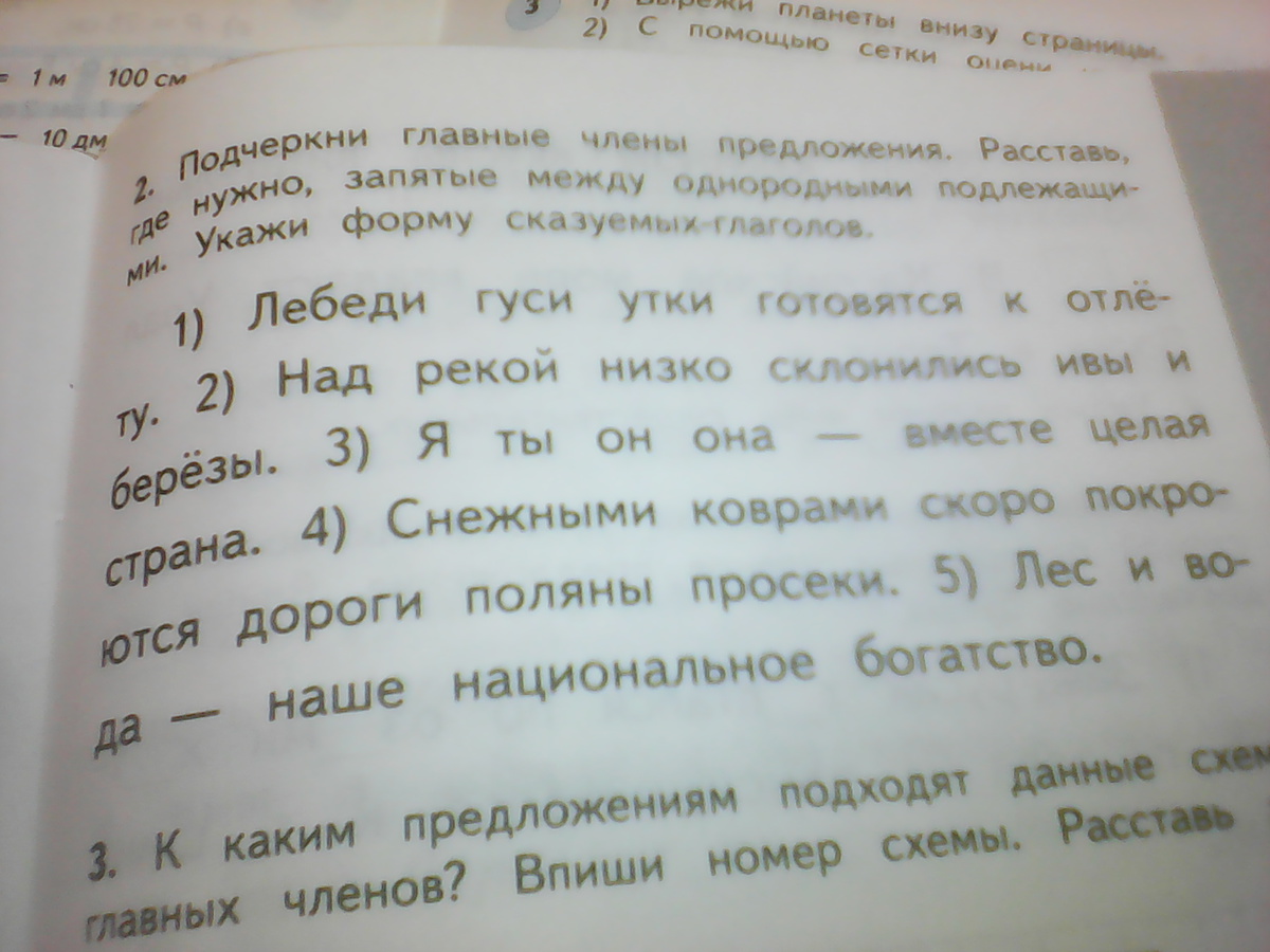 подчеркни главные члены предложения. Расставь где нужно Запятые между однородными подлежащими.