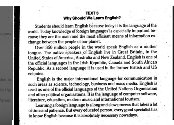 Студенты должны изучать английский, потому что сегодня это - язык мира. В наши дни знание иностранных языков особенно важно потому, что они являются основным и самым эффективным средством для обмена информацией между населением нашей планеты.