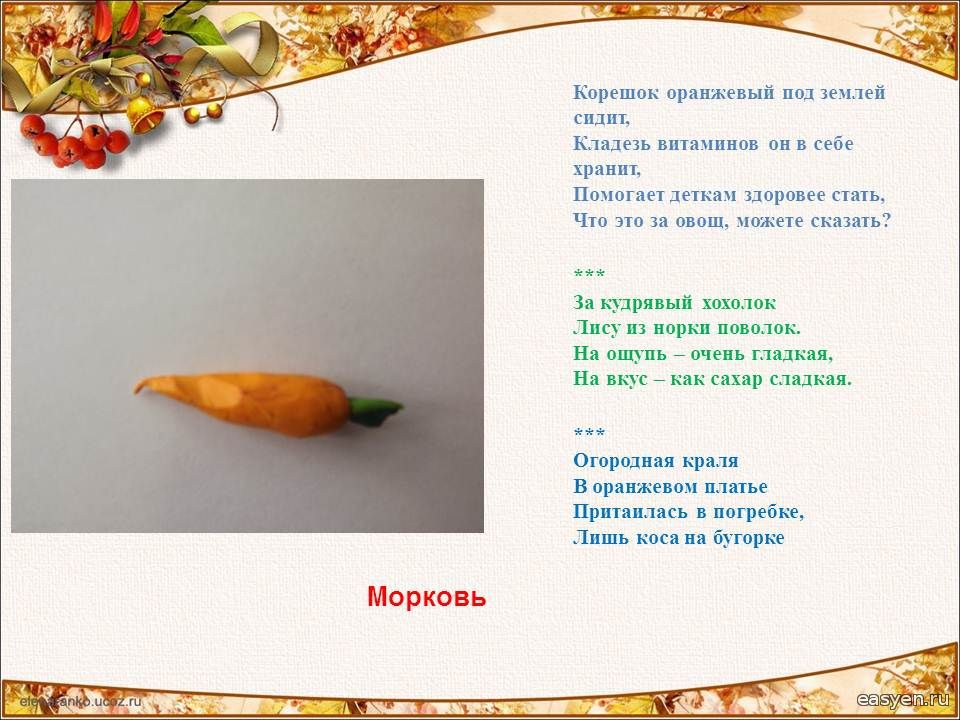 На данном уроке были использованы загадки про овощи, дети показали сценку "Спор овощей", потом лепили из пластилина овощи. Каждый ученик лепил по несколько овощей, потом все складывали в корзинку.