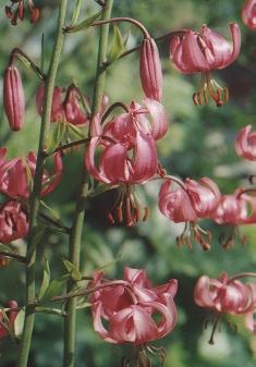 Лилия кудреватая (Lilium martogon) — изящнейший цветок, который во многих областях нашей страны считается чрезвычайно редким и подлежит охране. Это многолетнее травянистое растение относится к семейству лилейных. В высоту лилия кудреватая может достигать полутора метров. Ее продолговатые срединные листья собраны в мутовки по 5—6 штук, далее по стеблю располагаются очередные листья. В июне—июле на лилии распускаются розоватые цветки, собранные в кисти. Тычинки лилии кудреватойимеют пыльники фиолетового цвета. Лепестки околоцветников, украшенные фиолетовыми крапинами, закручиваются по направлению к цветоножке — недаром в народе лилию кудреватую называют «царские кудри».