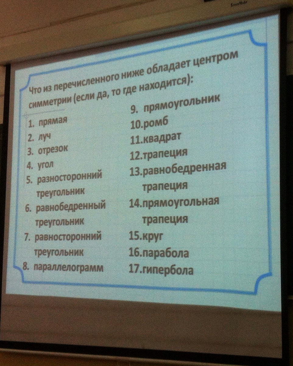 8) параллелограмм - центр симметрии на пересечении диагоналей