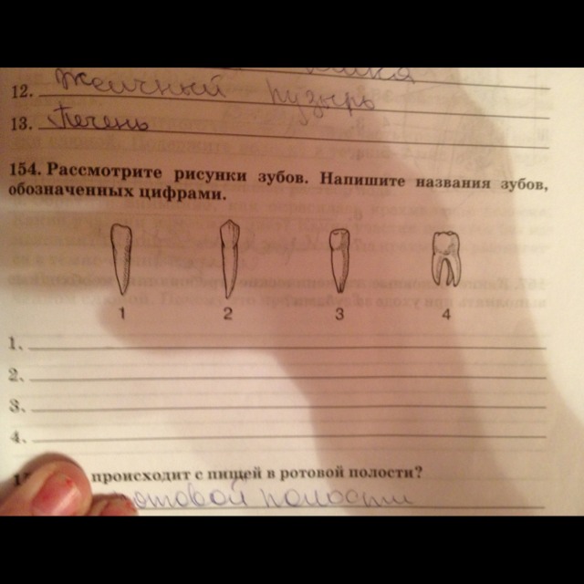 154 - 1 рецец 2 клык 3 мал. коренной 4 - большой коренной