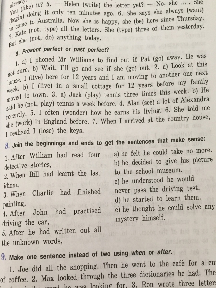 1. I phoned Mr. Williams to find out if Pat had gone away. He was not sure. Wait, I'll go and see if she has gone out.