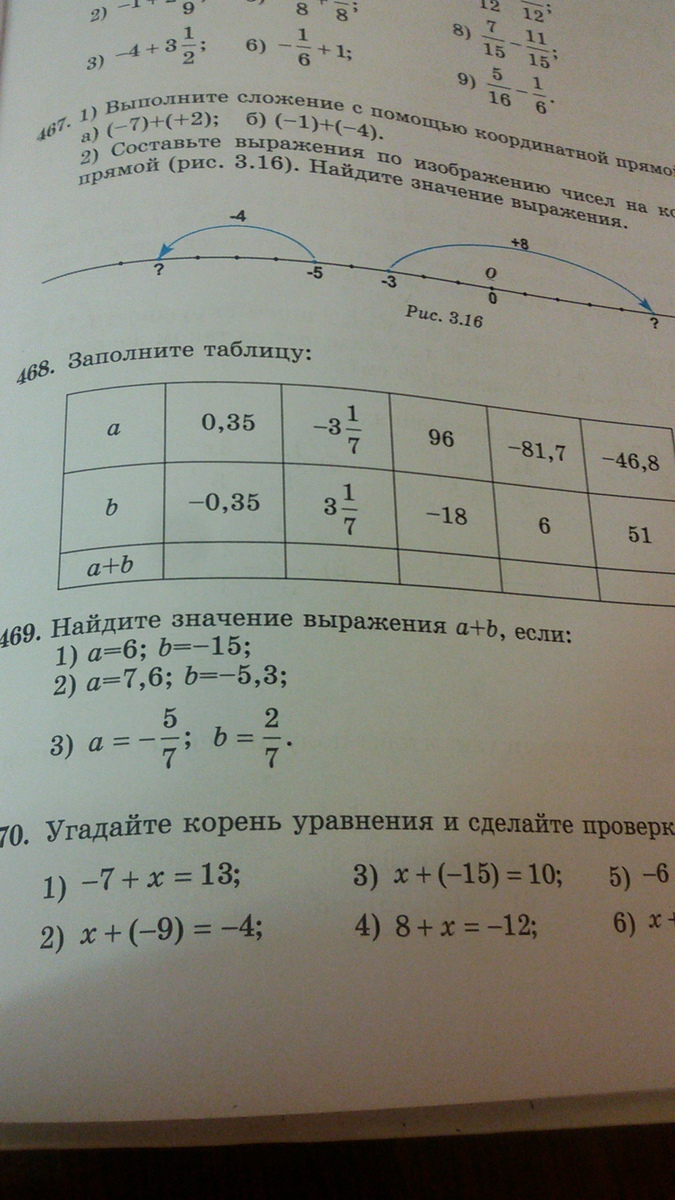 6-15=-9, 7,6-5,3=2,3, -5/7+2/7=-3/7 это 469