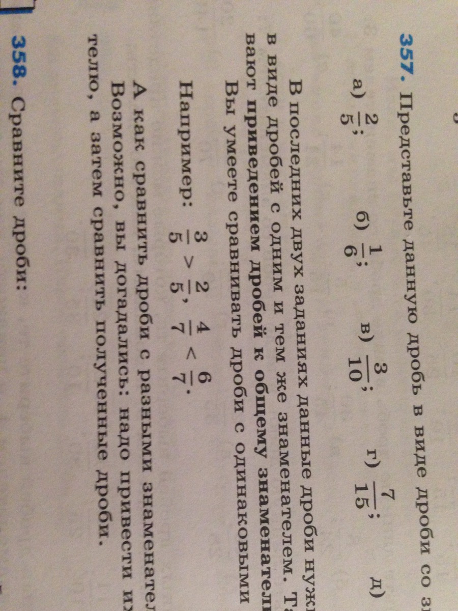 представте данную дробь в виде дроби со знаменателем 30:2/5,1/6,3/10,7/15,1/2,2/3 в последних двух заданиях данные дроби нужно было представить в виде дробей с одним и тем-же знаменателем.