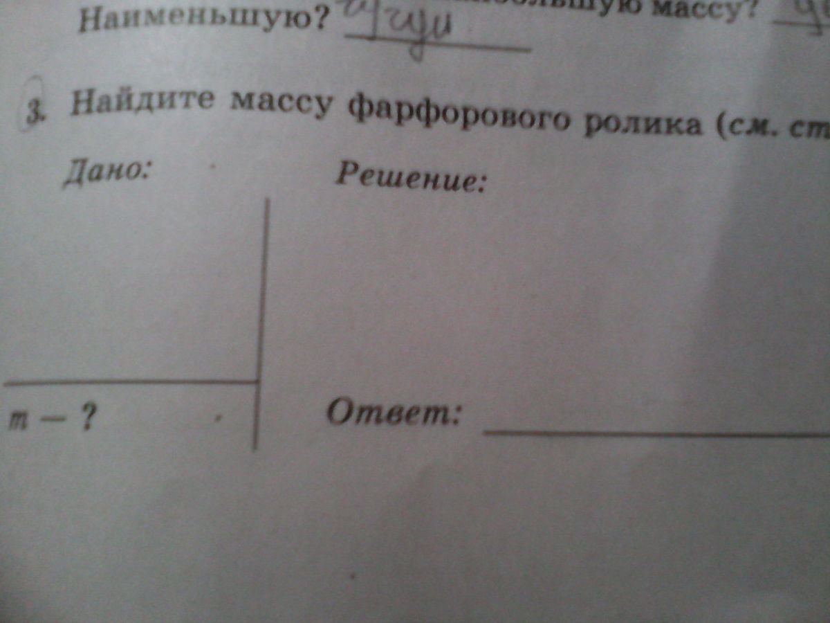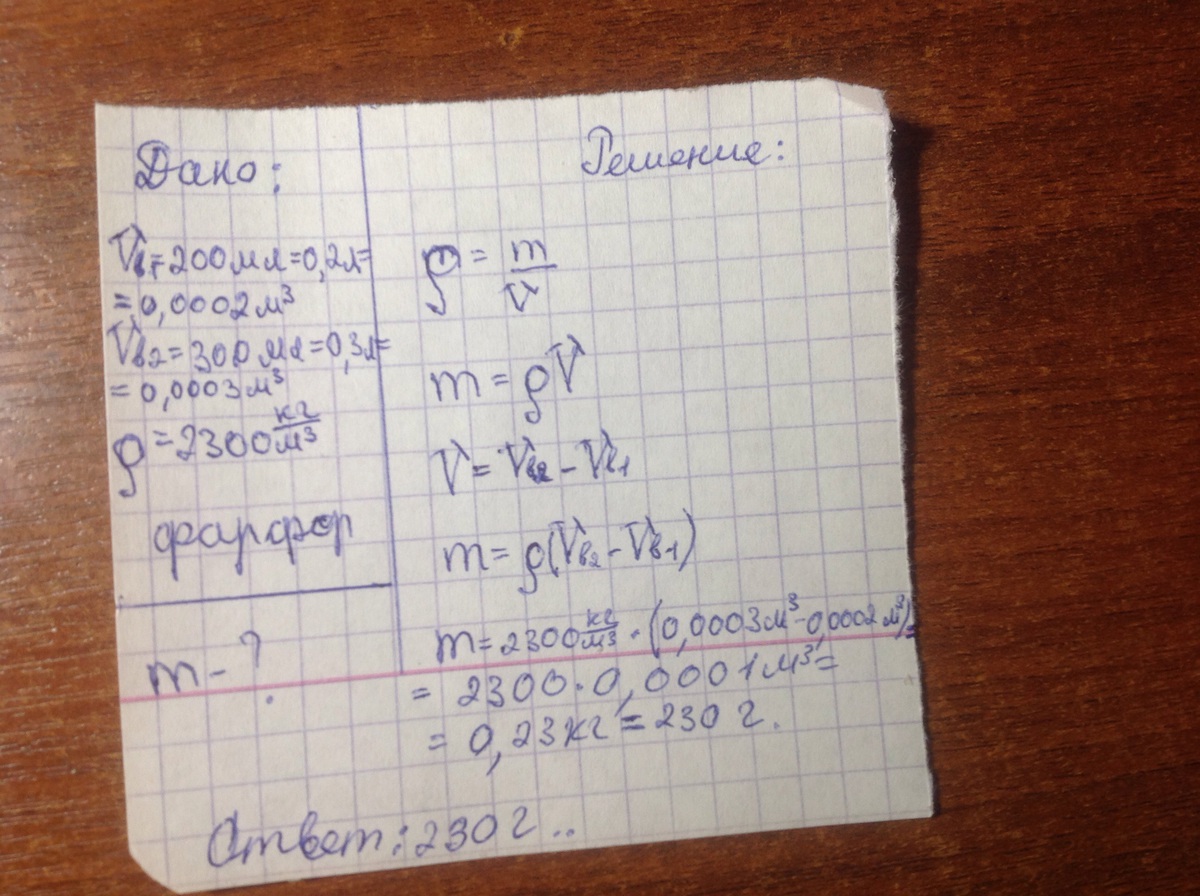 Найдите массу фарфорового ролика(на рисунке в первой мензурке(без фарфорового ролика) налито 200 мл,а во второй мензурке(с фарфорным роликом) налито 300 мл!