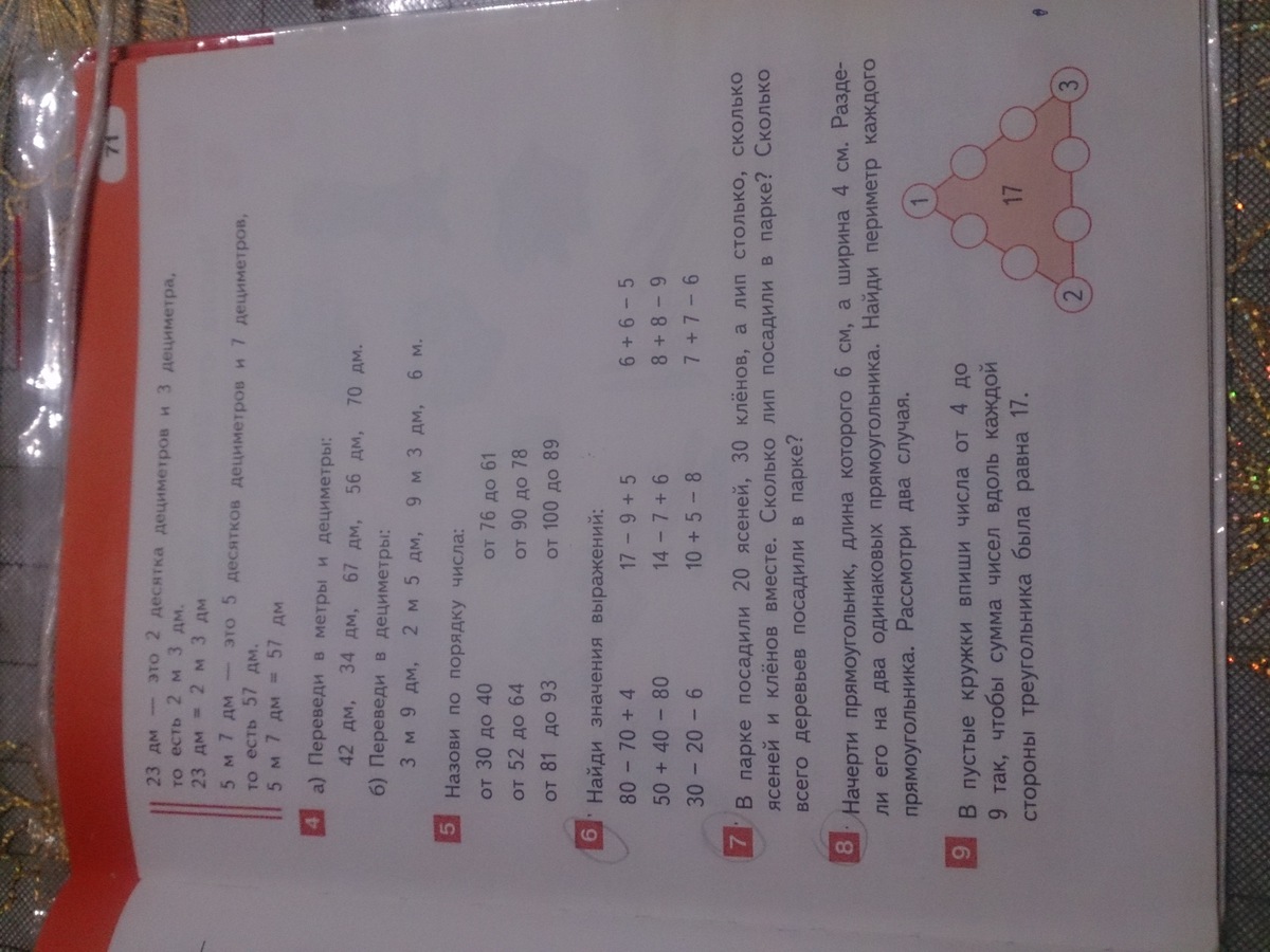 67 дм= 6 м 7 дм