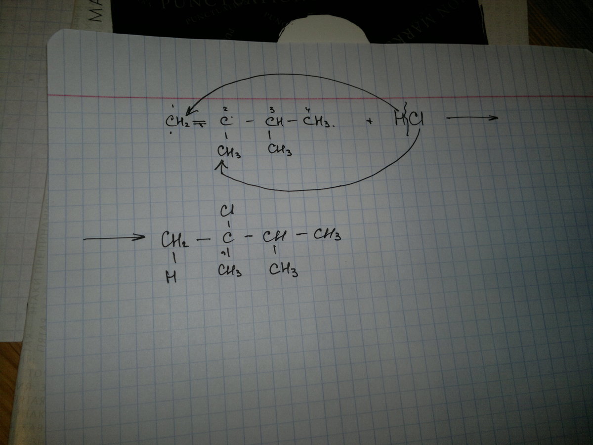 Происходит разрушение двойной связи,водород присоединяется туда,где его больше,а хлор туда,где имеется свободная "рука" :D