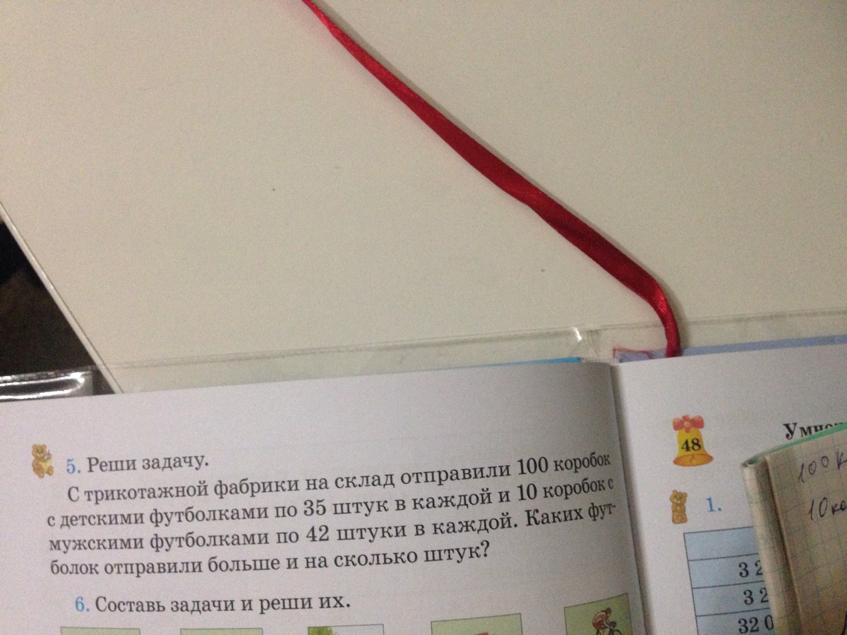 1) 100 * 35 = 3500 (шт) - всего детских футболок;