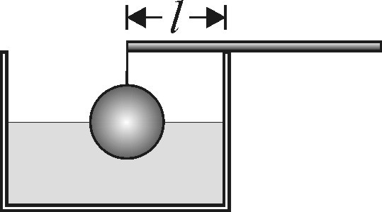 Желая определить массу m шарика объёмом V=0,5см3, ученик подвесил его на лёгкой нити к концу тонкого однородного стержня массой M=4,5 г и длиной L=5 см. После этого он положил стержень на край тонкостенной кюветы с водой так, чтобы в воду погрузилась ровно половина шарика. Оказалось, что стержень находится в равновесии, если длина отрезка стержня от точки крепления нити до края кюветы равна l = 1,5 см. Определите массу шарика, считая плотность воды равной ρ=1г/см3. Ответ приведите в граммах, округлив до двух знаков после запятой.