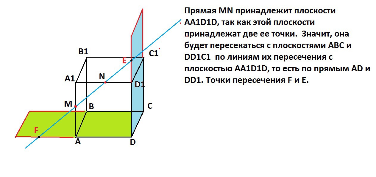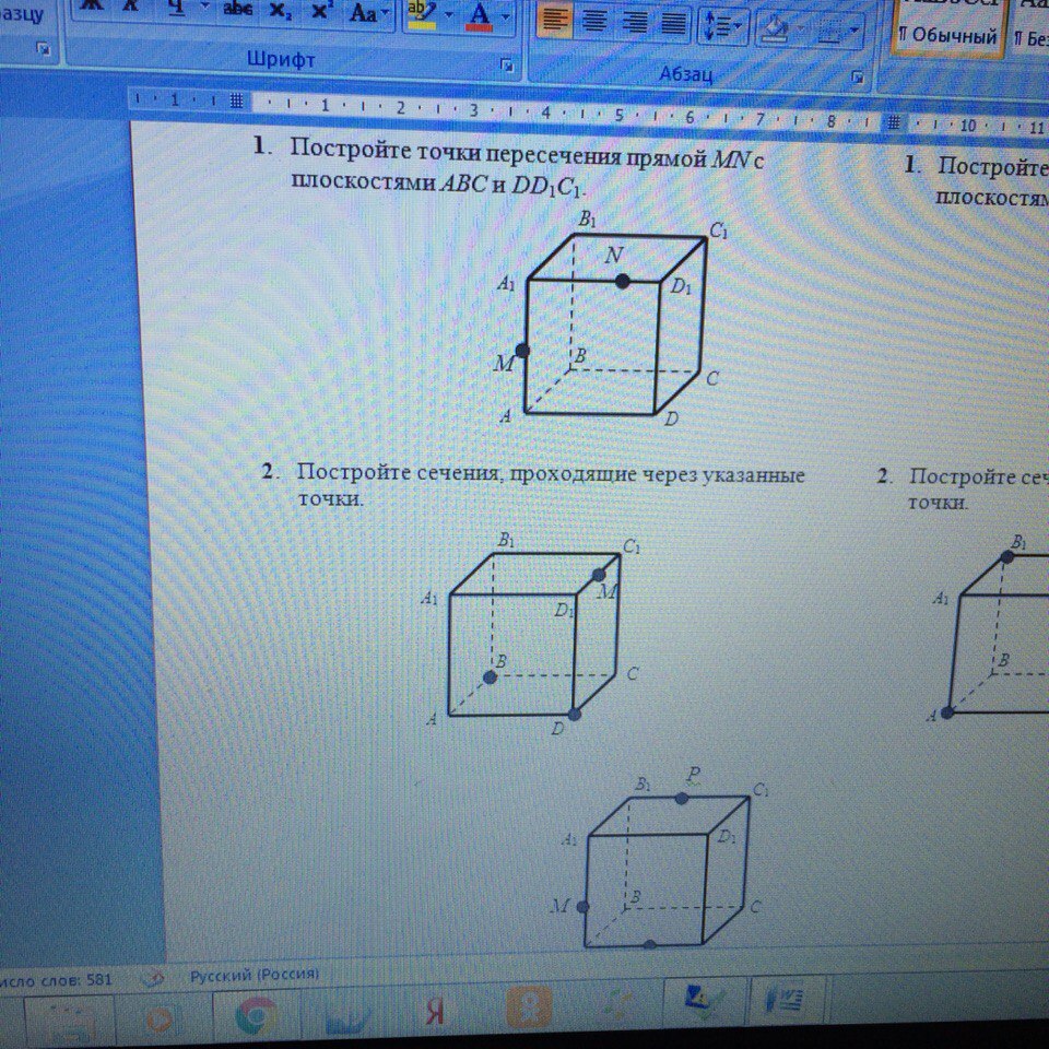 1 Постройте точки пересечения прямой MN c плоскостями ABC и DD1C1. (см рисунок)