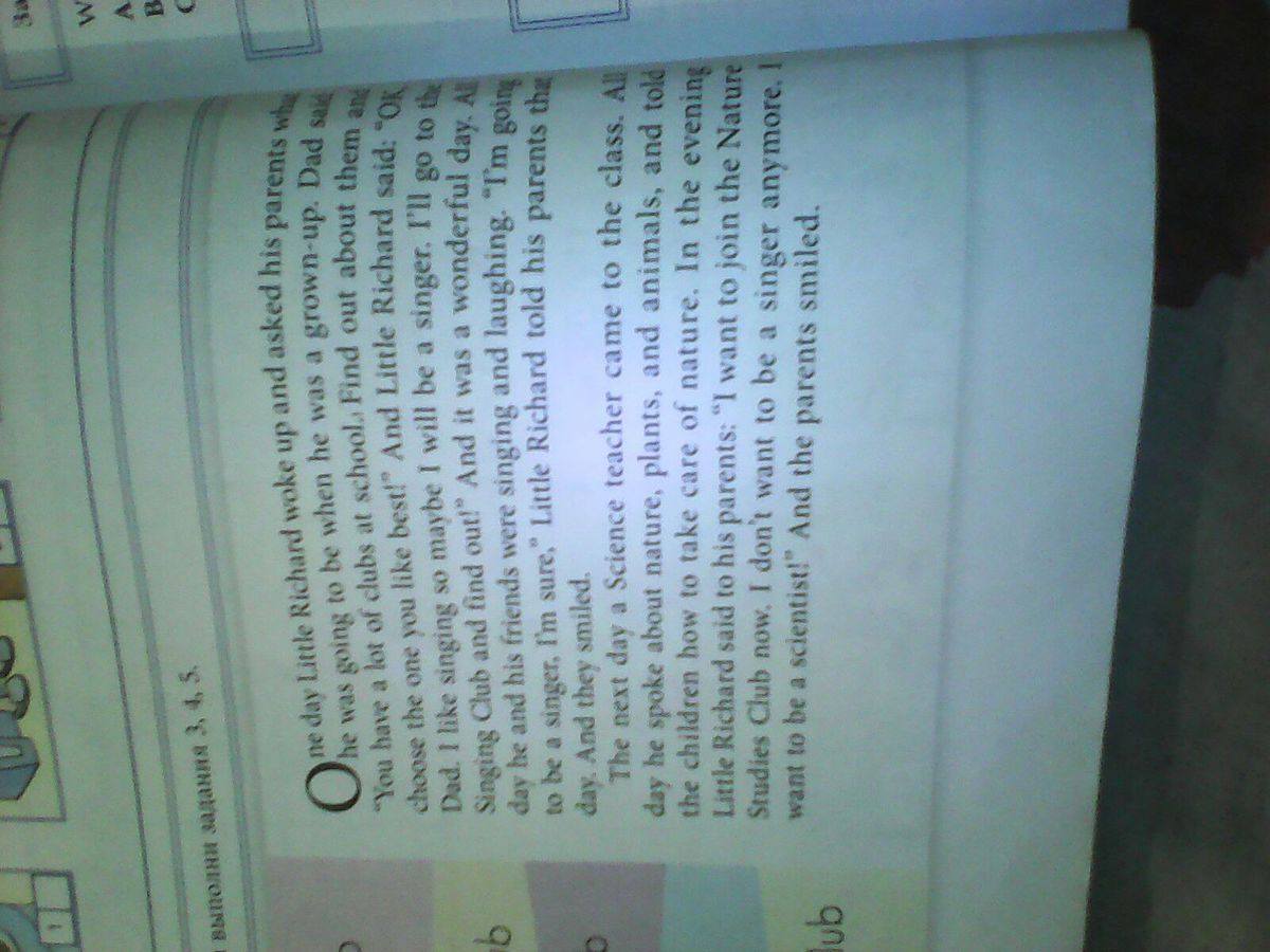 Однажды маленький Ричард проснулся и спросил родителей кем он может стать когда выростет. Отец ему ответил: " В твоей школе есть множество кружков. Узнай о них и выбери тот, который понравиться больше всех" И Ричард сказал : "Хорошо, я люблю петь, значить я могу стать певцом. И пойду на музыкальные занятия" это был чудесный день. На протяжении дня он со своими друзьями пел и смеялся. Маленький Ричард говорил родителям весь день, что он будет певцом. И они улыбались.