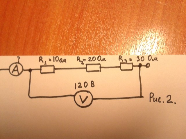РИС 2- определите по данной схеме общее сопротивление цепии показание амперметра(R1=10 Ом,R2=20 Ом, R3=30 Ом, 120 В)