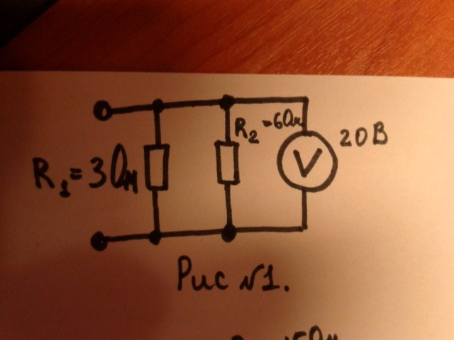РИС 1-определите по данной схеме общее сопротивлениеданного участка цепи и силу тока в неразветвленной части чепи ( R1=3 Oм, R2=6 Ом, 20 В)