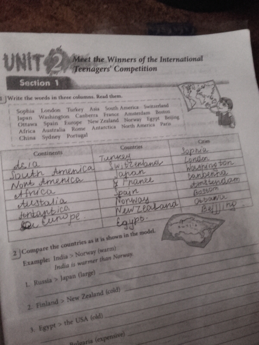 2. Сравните страны как это показано в образце.