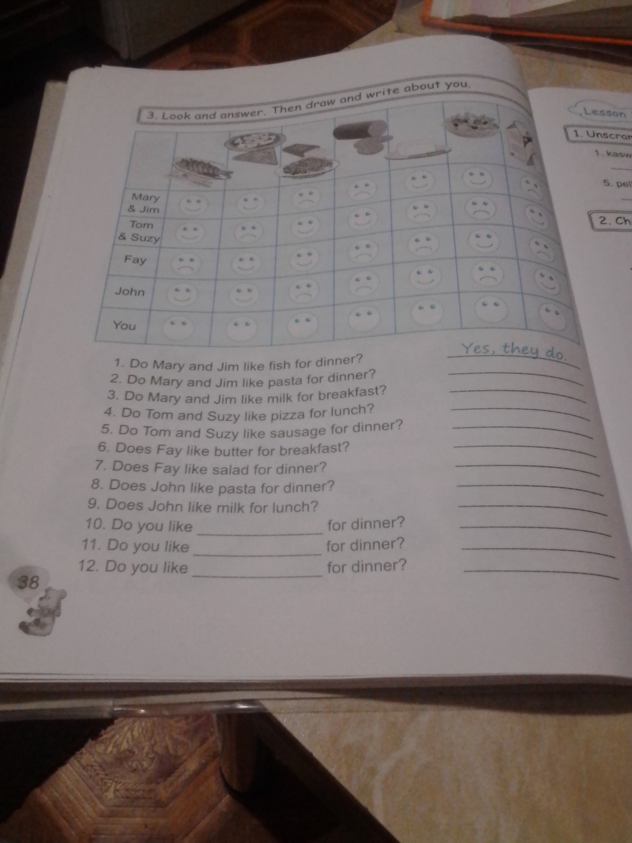 12. Do you like milk for dinner? Yes, I do ( где молоко,нарисуйте улыбку)