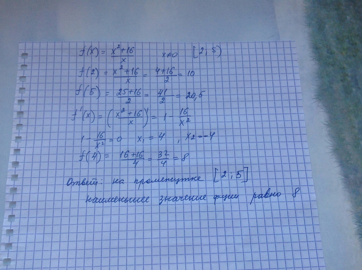 f`(x)=(2x*x-1(x²+16))/x²=(2x²-x²-16)/x²=(x²-16)/x²=0