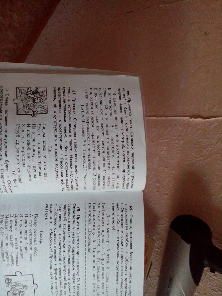 Помогите пожалуйста! Прочитай текст. Сколько падежей в русском языке? Какими окончаниями выражается каждый падеж? Какие падежи употребляются с предлогами?