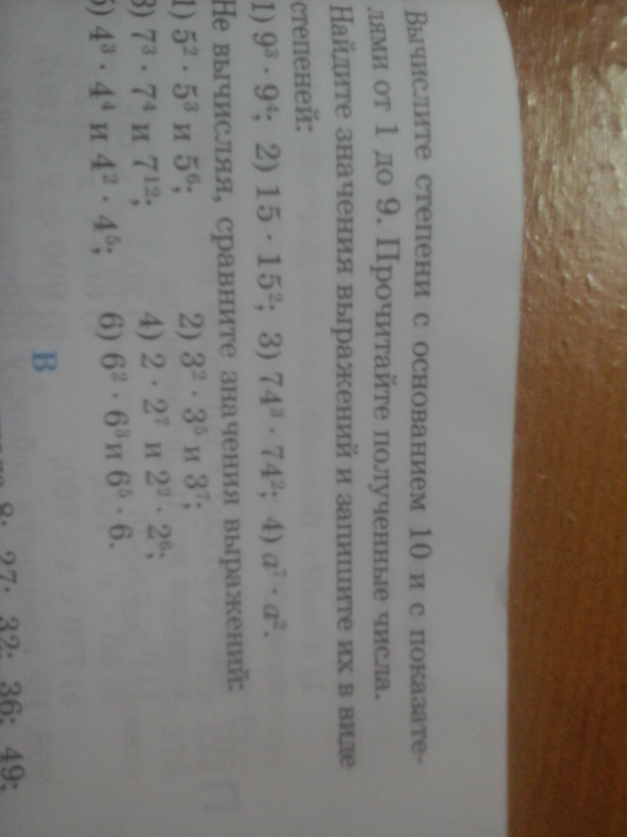 1) 9⁷ 2) 15³ 3) 74⁵ 4) a⁹