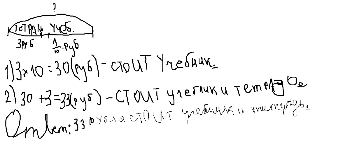 Тетрадь стоит 3 рубля что составляет 1/10 часть стоимости учебника сколько стоят тетрадь и учебник вместе