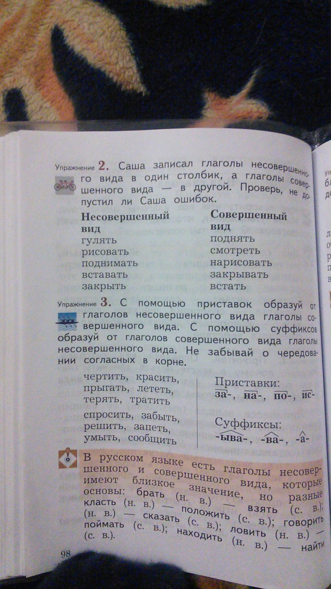 Несовершенный вид-что делать?: спраш-ива-ть, забы-ва-ть, реш-а-ть, запе-ва-ть, умы-ва-ть, сообщ-а-ть