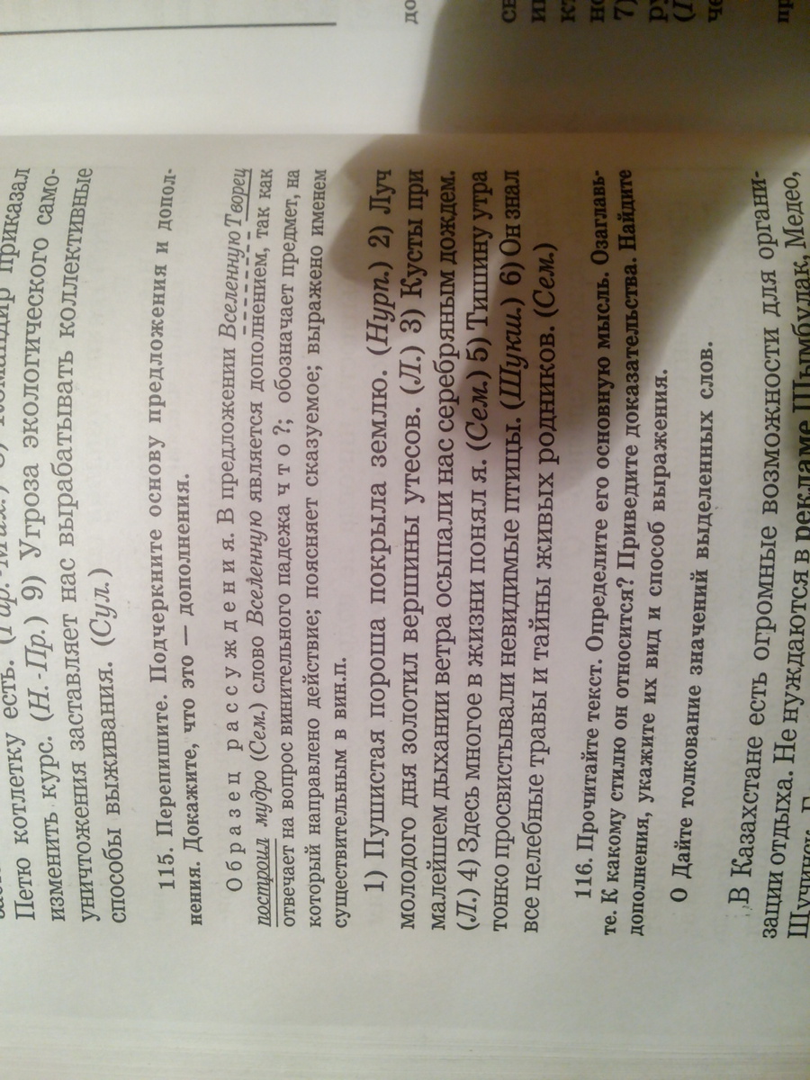 луч молодого дня (доп, отвеч на ? чего? р.п.) золотил вершины (доп, отвеч на ? что, в.п.) утесов (доп, отвеч на ? чего? р.п.)