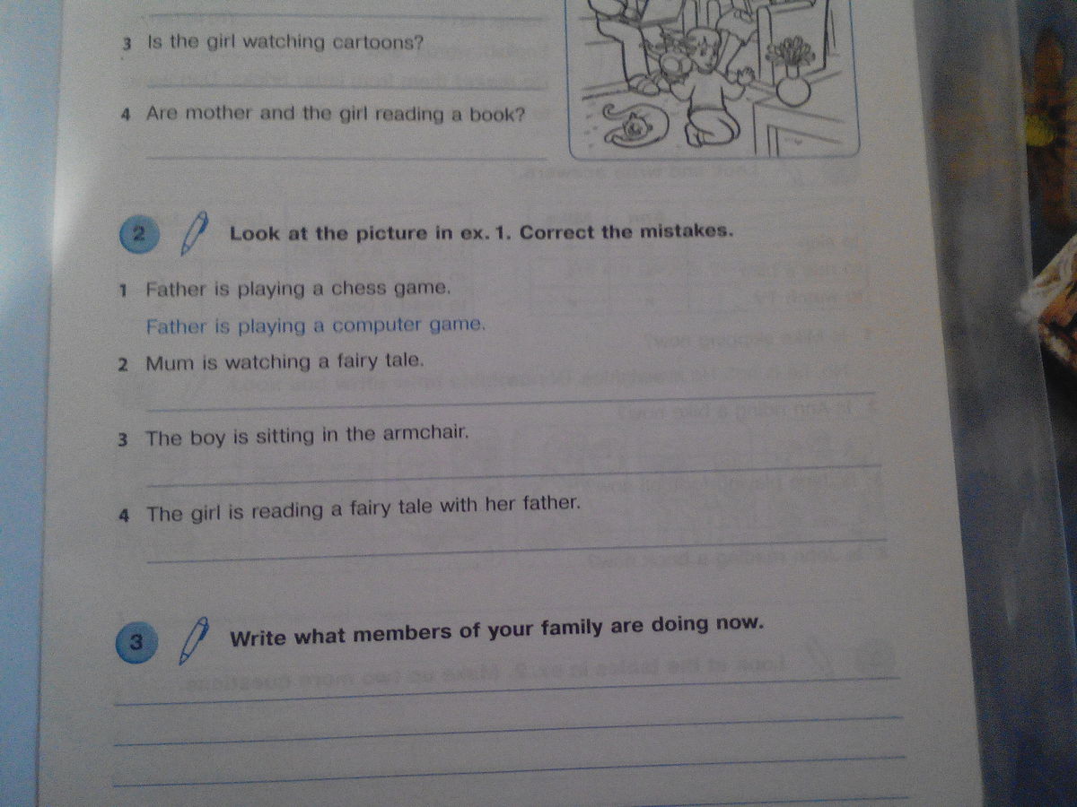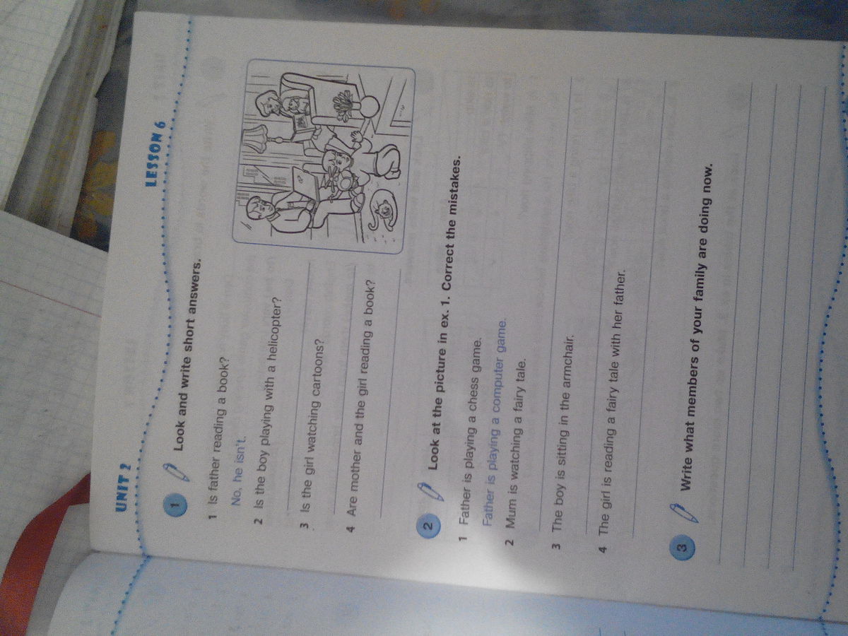1)Mum is reading a book.