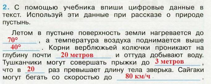 с помощью учебника впиши цифровые данные в текст используй эти данные при рассказе о природе и пустынь