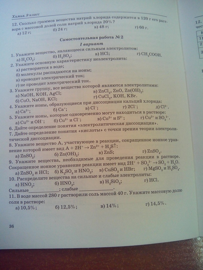 10) Cильные HNO3, HCl; Слабые HNO2, H2SiO3