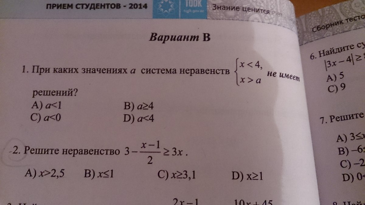 Так как X строго меньше 4, то методом исключения выбираем B)