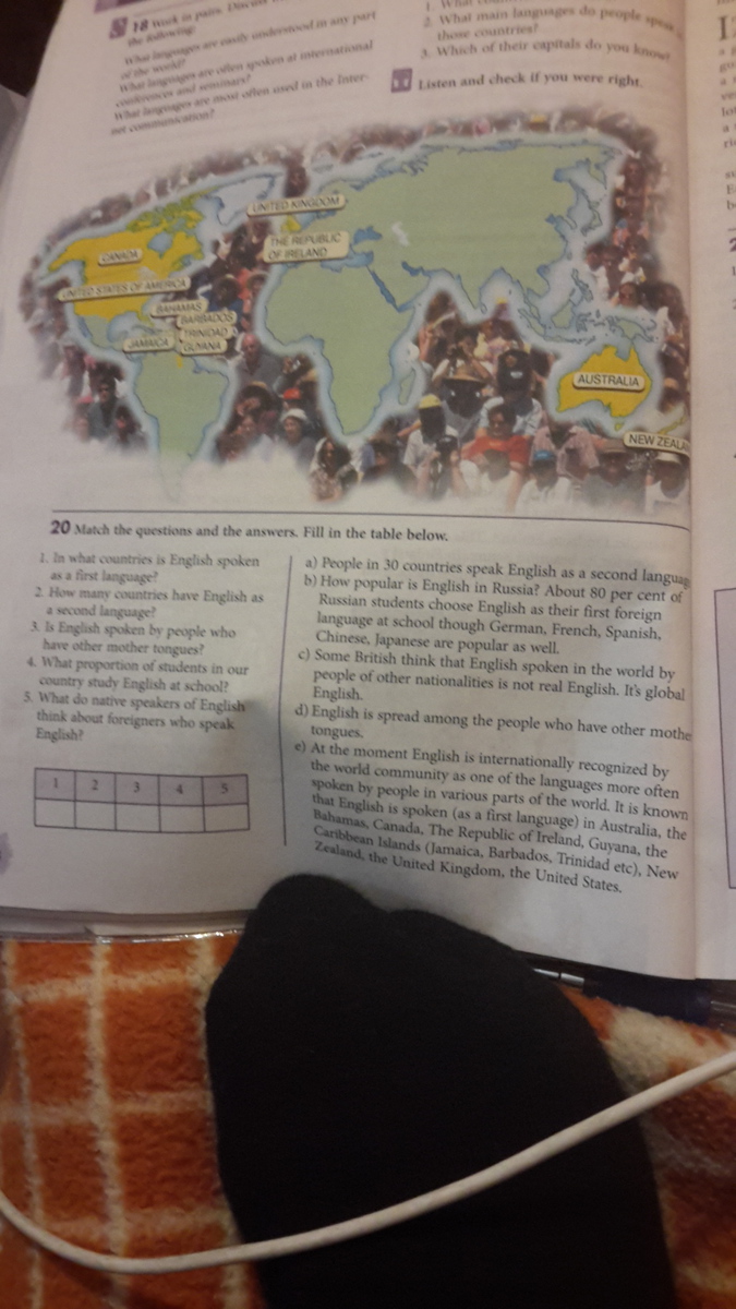 Match the qustions and the answers. Fill in the table below