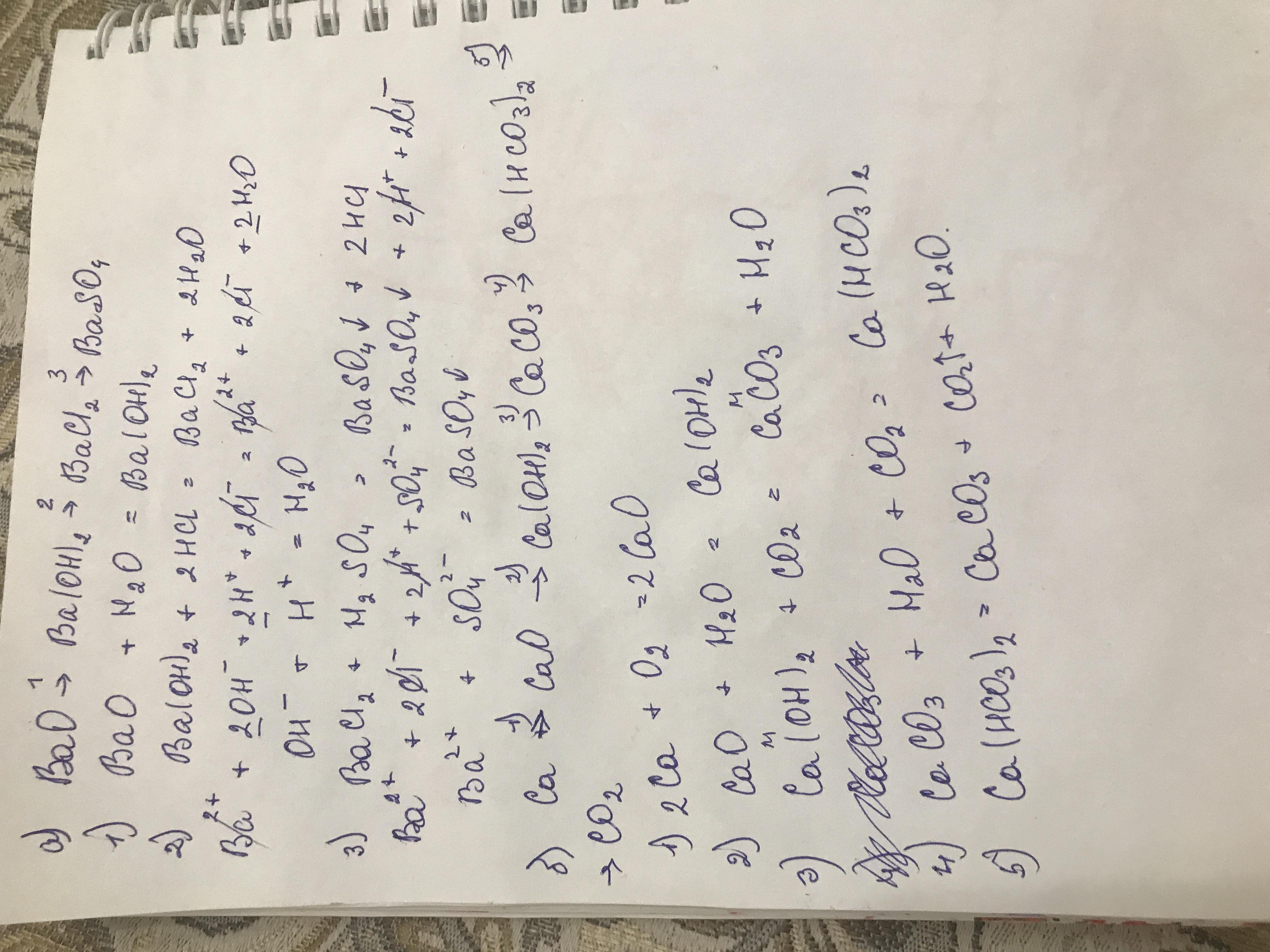 а)BaO->Ba(OH)->BaCl2->BaSO4