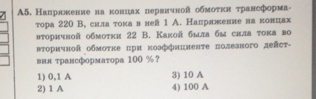 КПД 100% означает передачу мощности без потерь. При понижении в 10 раз напряжения значит ток вырос в 10 раз.