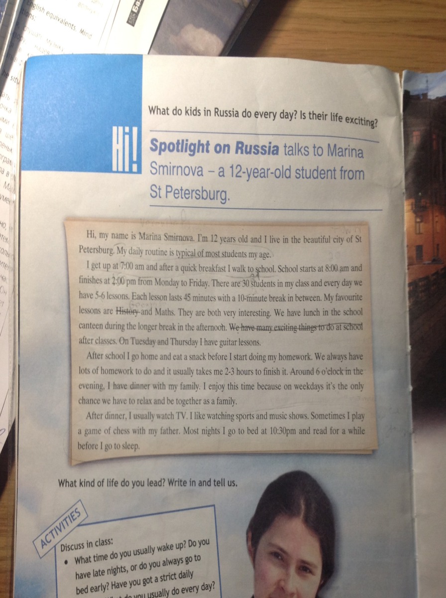Spotlight on Russia говорит с Мариной Смирновой, 12-летней школьницей из Санкт-Петербурга