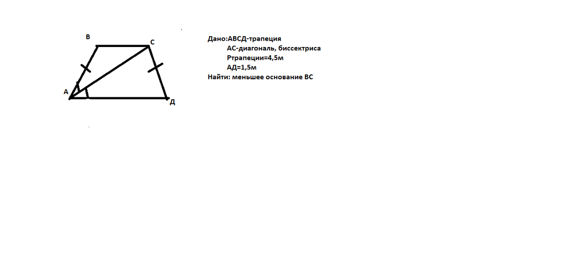 2) Если диагональ трапеции является её биссектрисой, то АВ=ВС. По условию, АВ=ВС=СД.