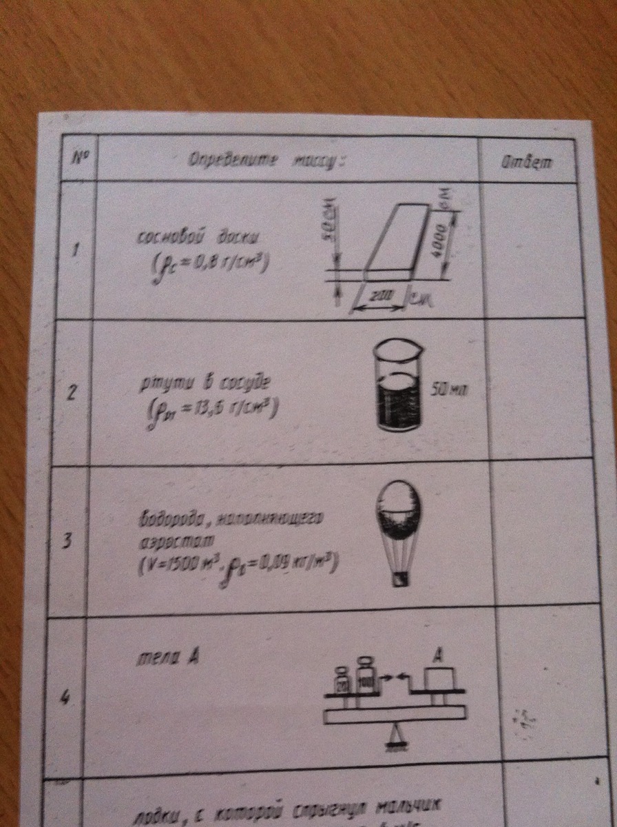 1) V=5*20*400 см3=40000 см3 m=po*V=0.8*40000=32000 г (32 кг)