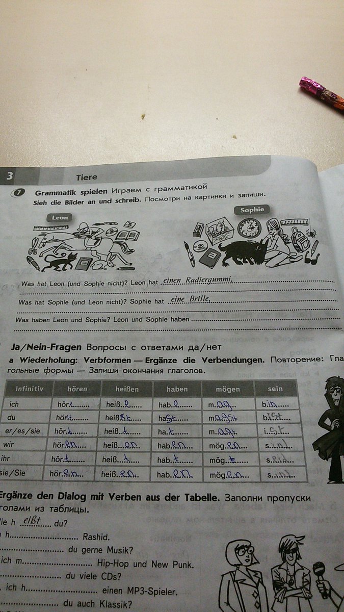 Sophi und Leon haben Hefte, Kulies (Kugelschreiber) und Bleistiefte