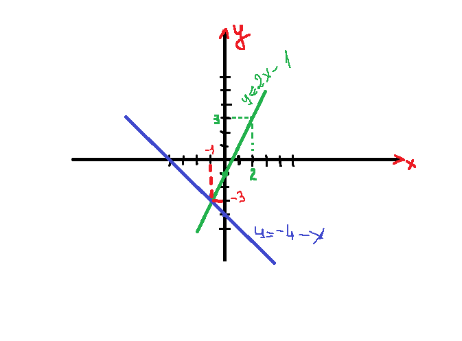 красные точки (-1;-3) точки пересечения,т.е решение , которое нам нужно