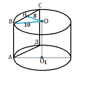 Радиус цилиндра равен 10 см. Сечение, параллельное оси цилиндра и удаленное от неё на 8 см, имеет форму квадрата. Найдите площадь сечения