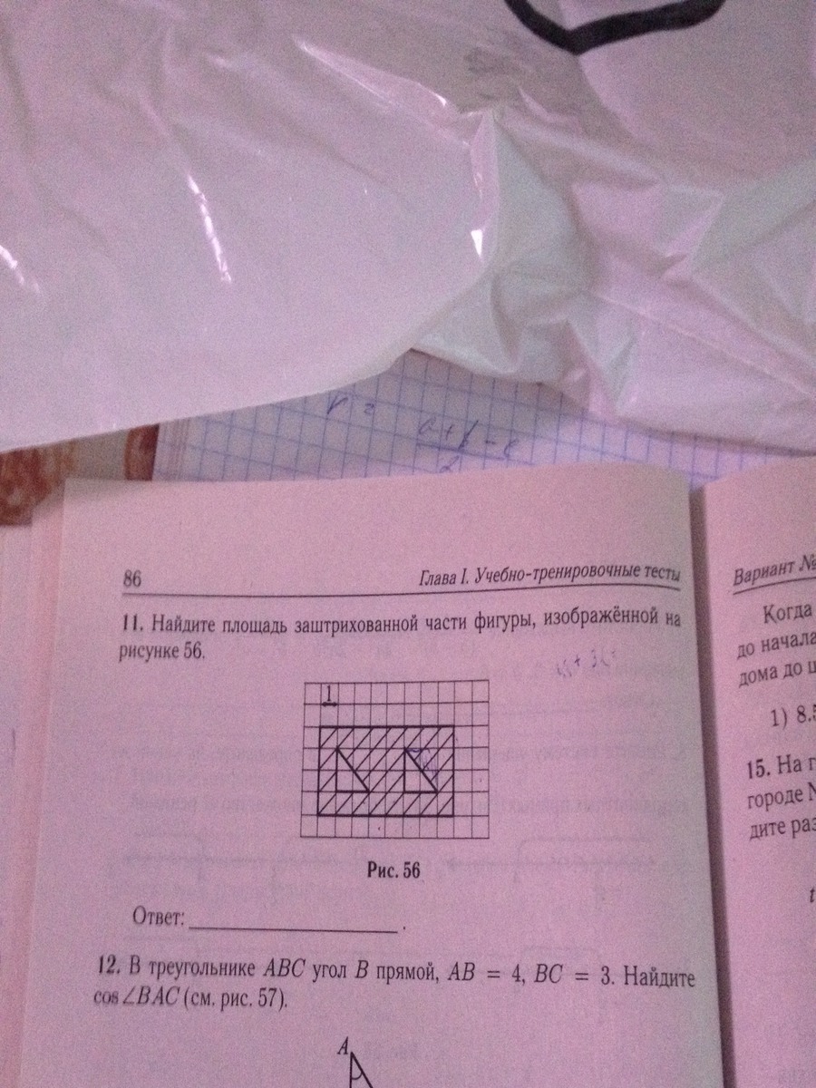 Найдите площадь заштрихованной части фигуры ,изображённой на рисунке 56 ,срочнооо!!!!!