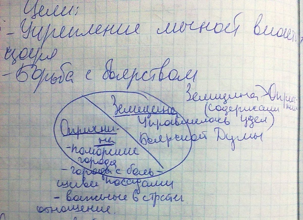 Главная цель опричнины — уничтожить остатки феодальной раздробленности, подорвать основы боярско-княжеской независимости - была достигнута, но, ликвидировав политическую раздробленность, опричнина обескровила страну, деморализовала народ...
