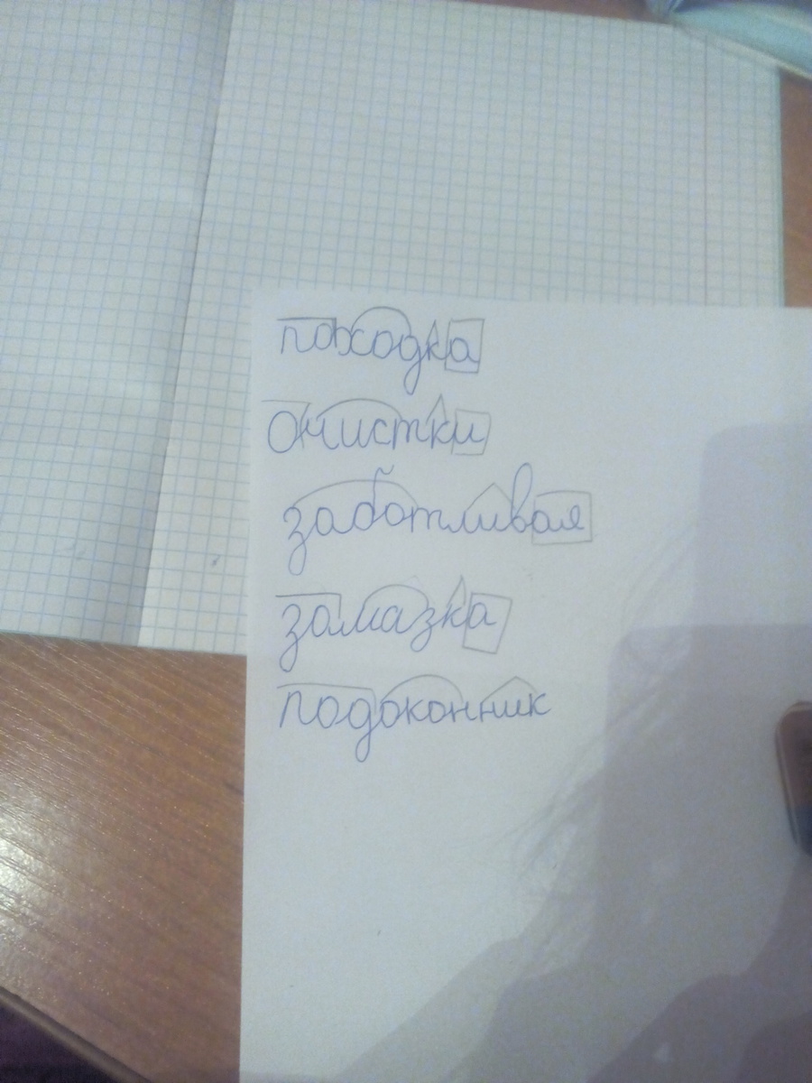 замазка-приставка-за маз-корень суффикс-к оконьчание-а......