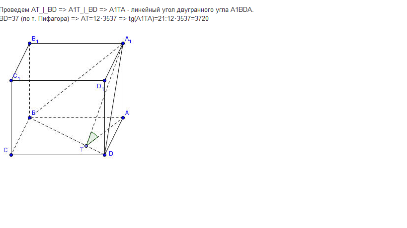 в прямоугольном параллелепипеде ABCDA1B1C1D1 извесны длины ребер: АВ=12, AD=16, CC1=9. найдите угол между плоскостями BDD1 и AB1D1.